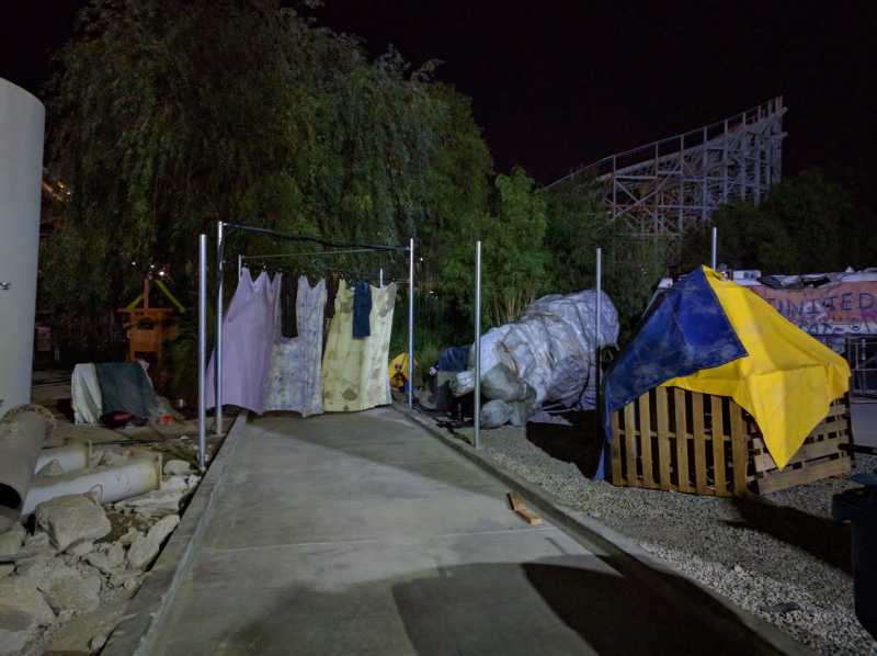 Designed and constructed an interactive exhibit for the PLAY! exhibition at the Autry Museum of the American West in 2017. The wall init is constructed of wood and Lexan, and aged to look like reclaimed wood. A crank made from a tricycle wheel can be turned by guests which both drives a belt that spins various vintage toys and appears to be spinning a vintage fan on top of the wall unit. The fan then appears to be blowing various sized kites suspended from an overhead rig comprised of 12 bicycle wheels acting as pulleys in a belt system. In reality the crank has an encoder on it being fed into a PLC-based control system. The fan and overhead kite system are driven by stepper motors which we can set specific ramp up and down times with a max speed limit for the over achieving child.