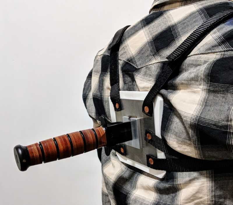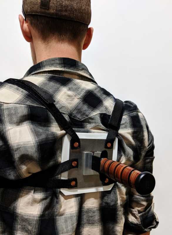 A run of reproduction harnesses from Ash vs Evil Dead made for Universal Studios Hollywood Halloween Horror Nights. Mostly screen accurate with some minor design adjustments to allow for performer quick changes, and to fit a wide range of body types. Made from leather, nylon webbing, and the embellishments are waterjet cut steel.