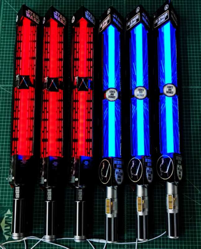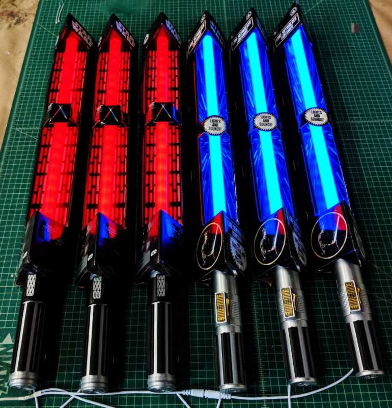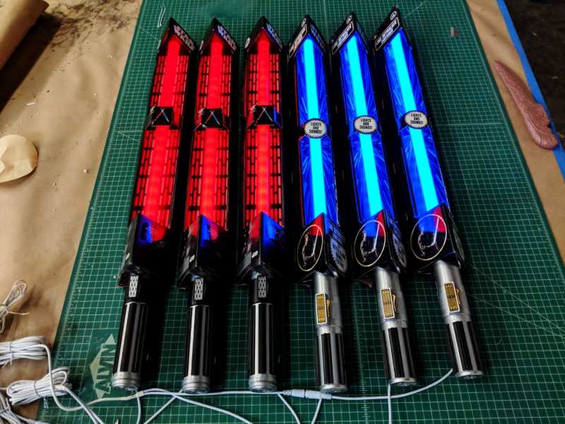 Fabrication of miniature scale lightsaber umbrellas based off of existing full scale product for storefront at Disneyland and Disney World.