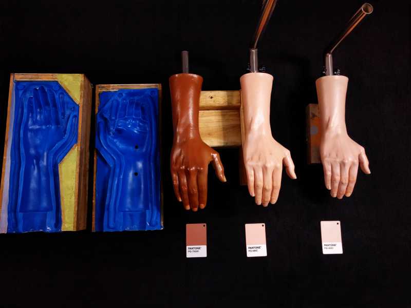 Faux hand costume elements for the Wizarding World of Harry Potter at Universal Studios Hollywood. Hands cast in plastic resin around stainless steel hardware, painted and sealed. CNC cut plastic pieces and welded stainless steel elements.